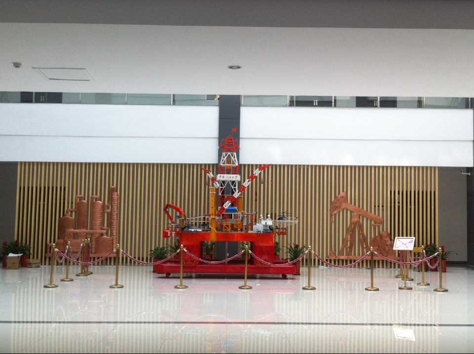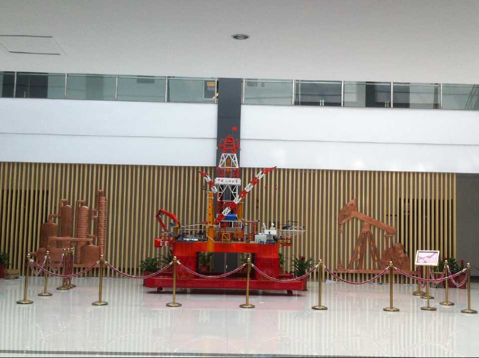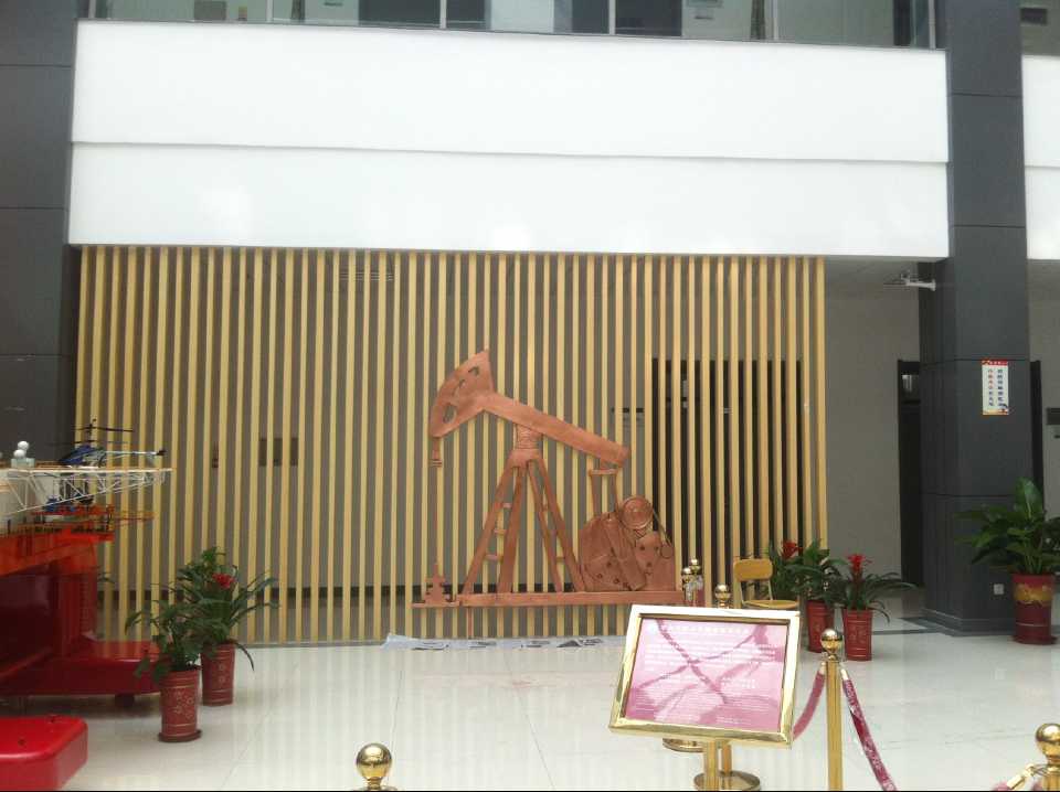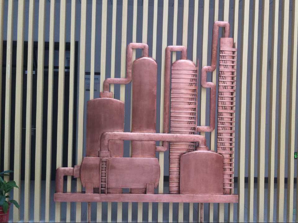 抽油機(jī)及化工廠鍛銅浮雕,2015年10月23日安裝于中國(guó)石油大學(xué)華東分校(青島市黃島區(qū))。材質(zhì):紫銅板。工藝:手工鍛銅。高:2.19米。
