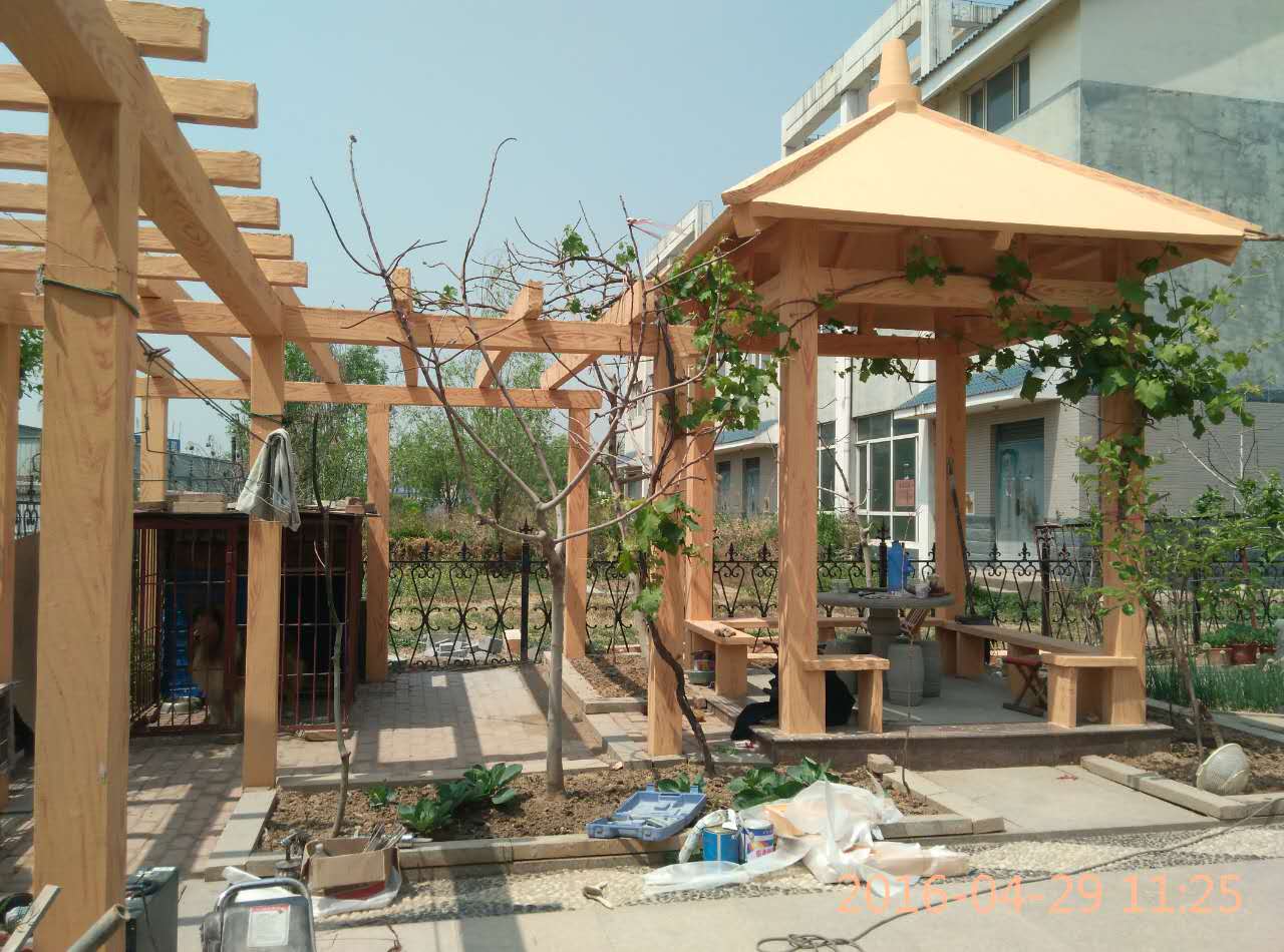施工內(nèi)容:水泥仿木長廊、藤架、水泥仿木涼亭,水泥浮雕。