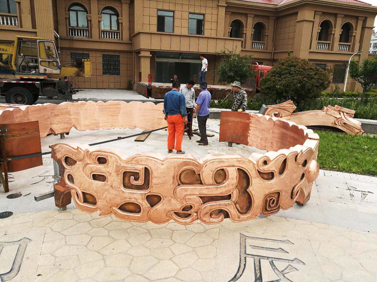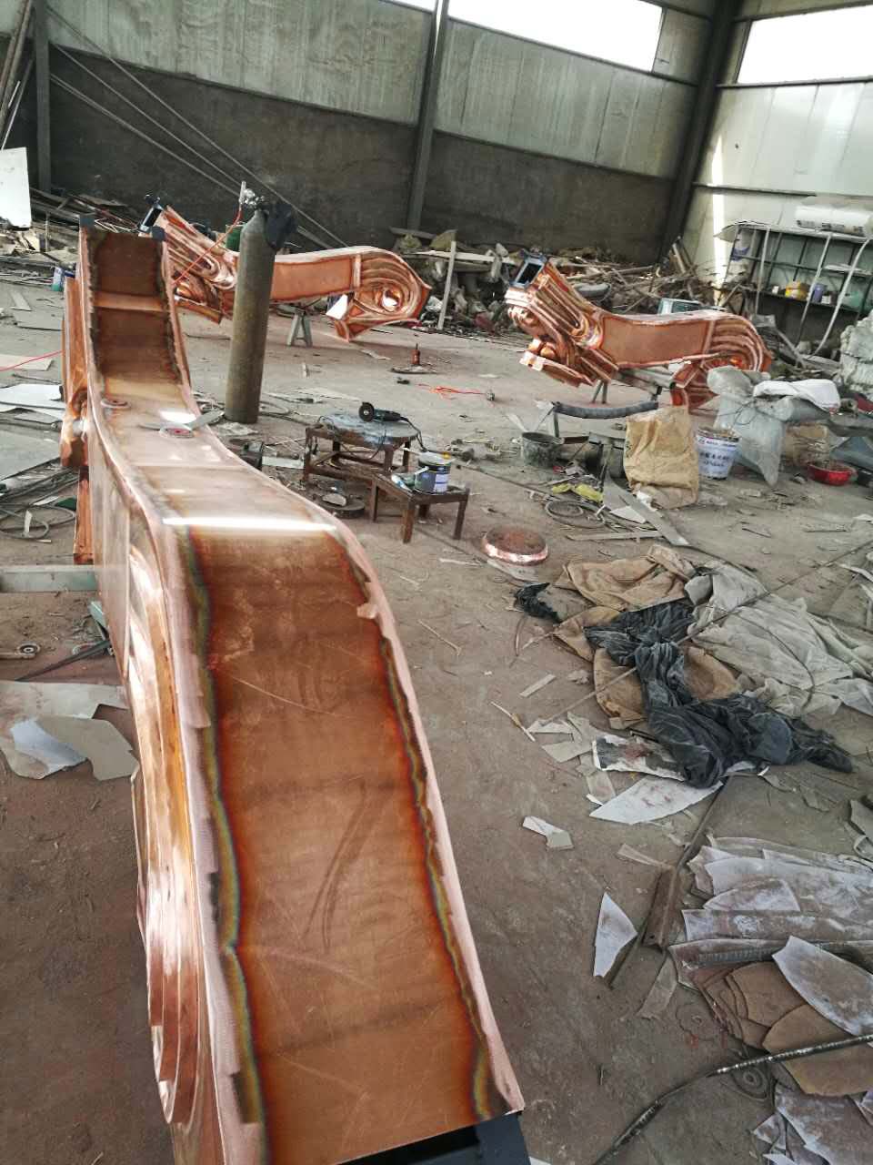 雕塑材質(zhì):紫銅板,手工鍛造。
