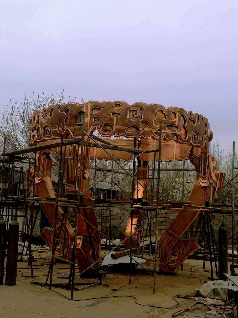 簡要技術(shù)要求:鍛銅渾天儀景觀小品設(shè)計、制作與安裝,采用厚度1.5-2.0mm紫銅鍛造。