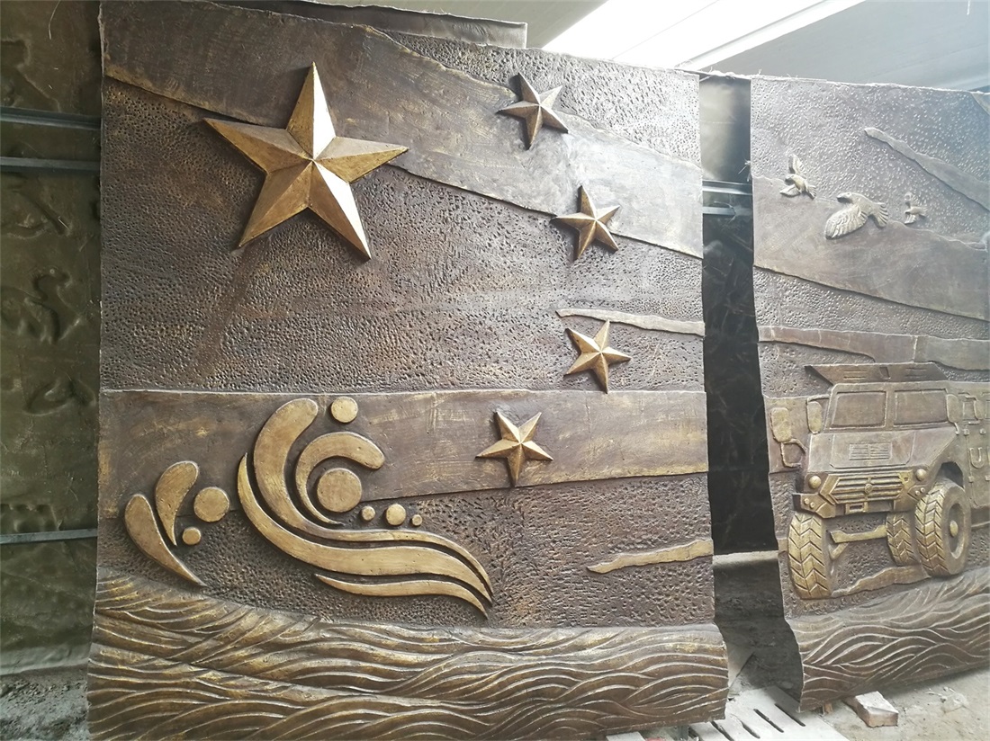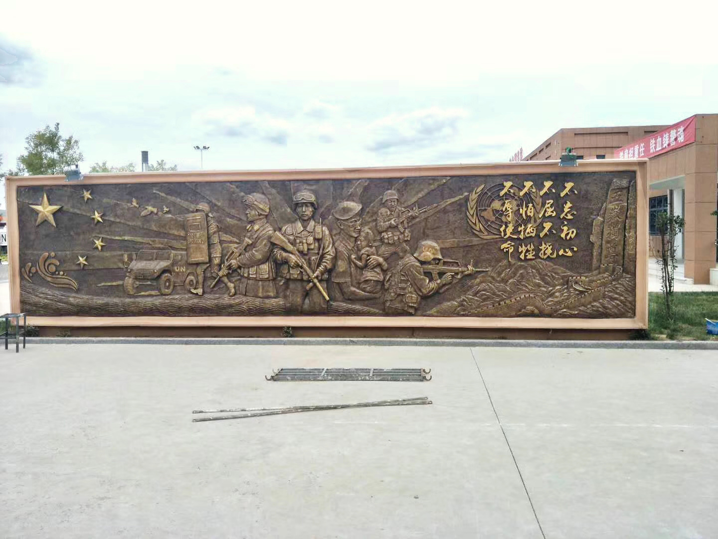 大型部隊(duì)維和題材的玻璃鋼浮雕施工完畢。