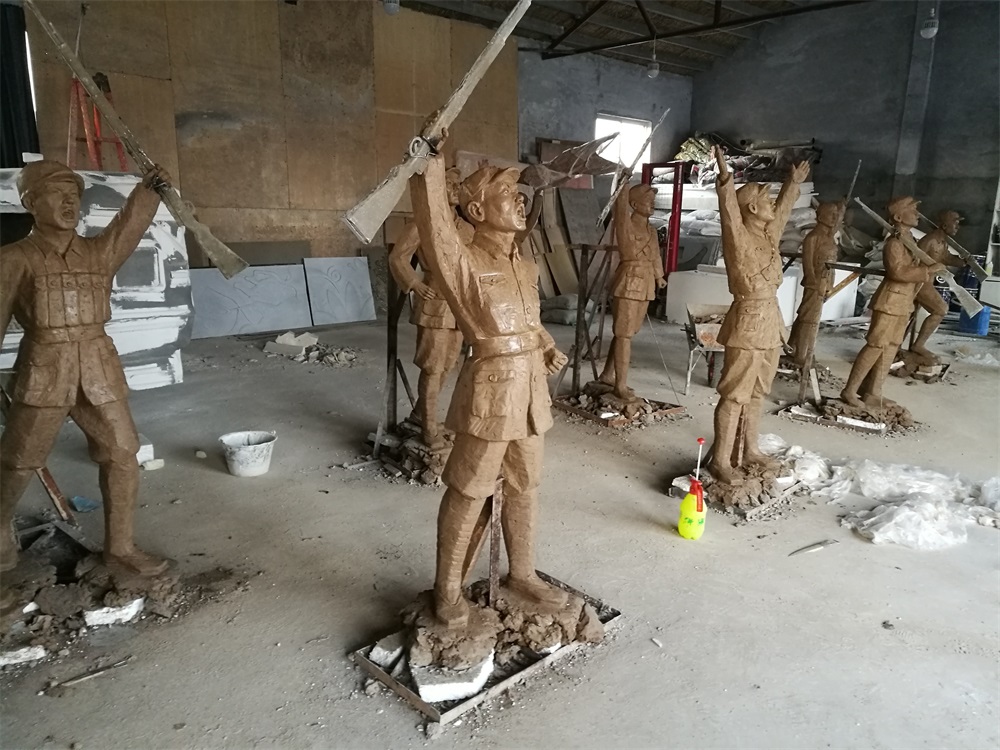 雕塑說明:紅旗雕塑采用不銹鋼鍛造工藝做型,高4米,長8米。人物群雕共10個人物,采用玻璃鋼工藝制作。
