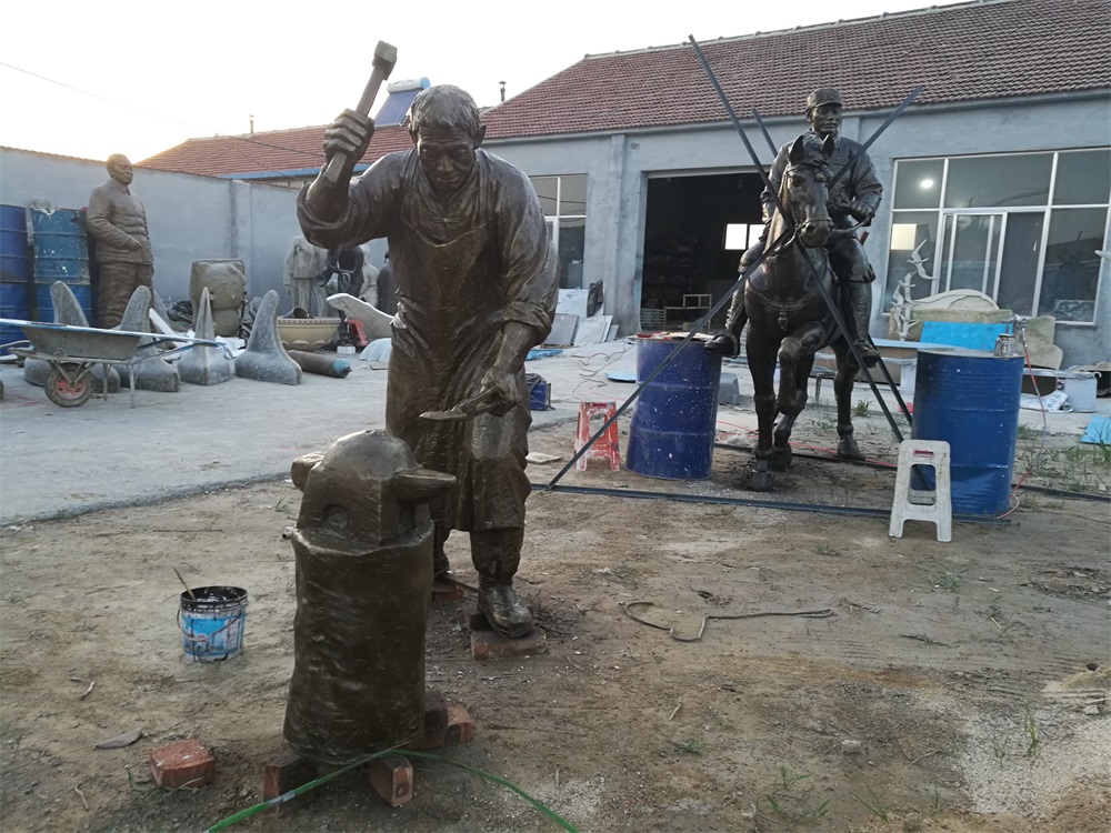 雕塑說明:騎馬將軍雕塑高2.6米,成品為玻璃鋼工藝制作。該組雕塑是雕塑公司拋開市場環(huán)境,真正藝術(shù)化創(chuàng)作的珍貴作品。打鐵匠雕塑,高1.9米,同樣采用玻璃鋼工藝制作。兩組雕塑的泥塑均有雕塑師張凱完成。未經(jīng)允許,嚴(yán)禁把本相冊圖片用于商業(yè)用途。