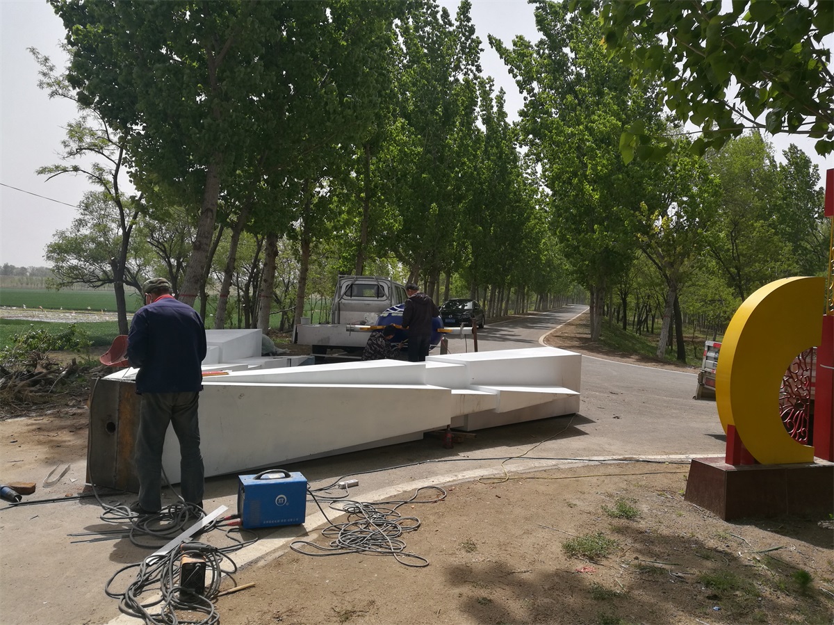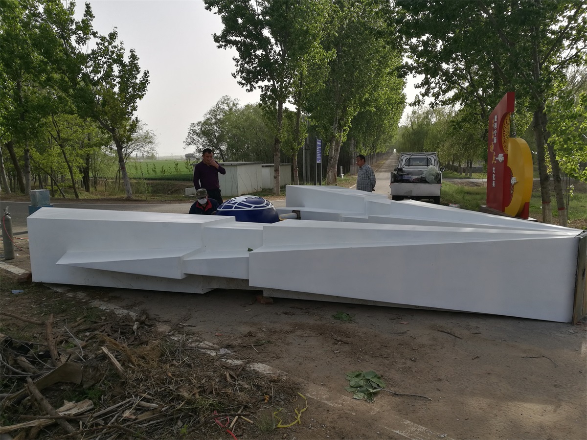 雕塑整體呈扇形構(gòu)造,代表黃河三角洲扇形外貌;兩側(cè)形似利劍,寓意治黃工作者敢于“亮劍”的拼搏精神; 中間球形,寓頂點之意;其上印制有黃河水利委員會標志,圍繞十只和平鴿。寓意以治黃事業(yè)為中心、人民幸福、和平安寧、生態(tài)保護、空間均衡;主體色彩以紅、黃、藍搭配。紅色代表黨建引領(lǐng),黃、藍象征海河交匯。寓意治黃事業(yè)在中國共產(chǎn)領(lǐng)導(dǎo)下開創(chuàng)新篇章。