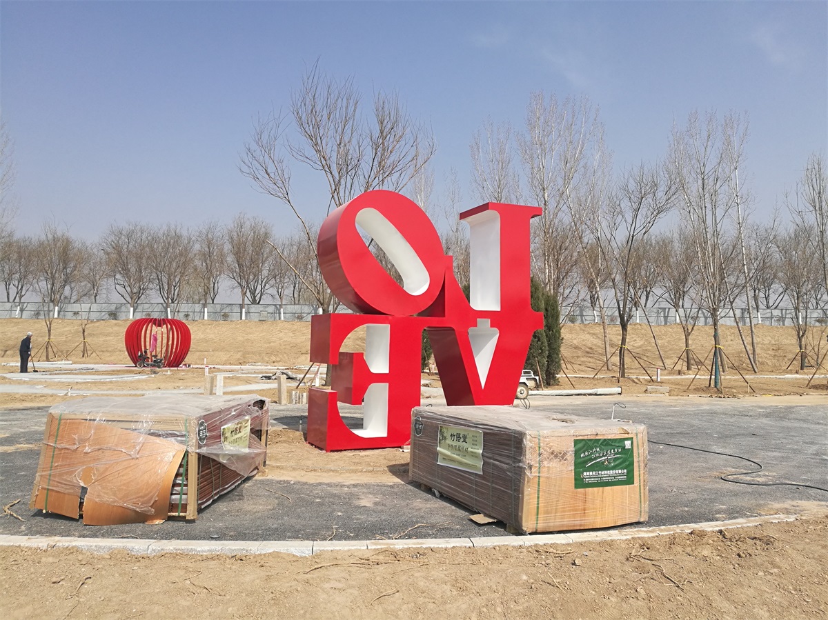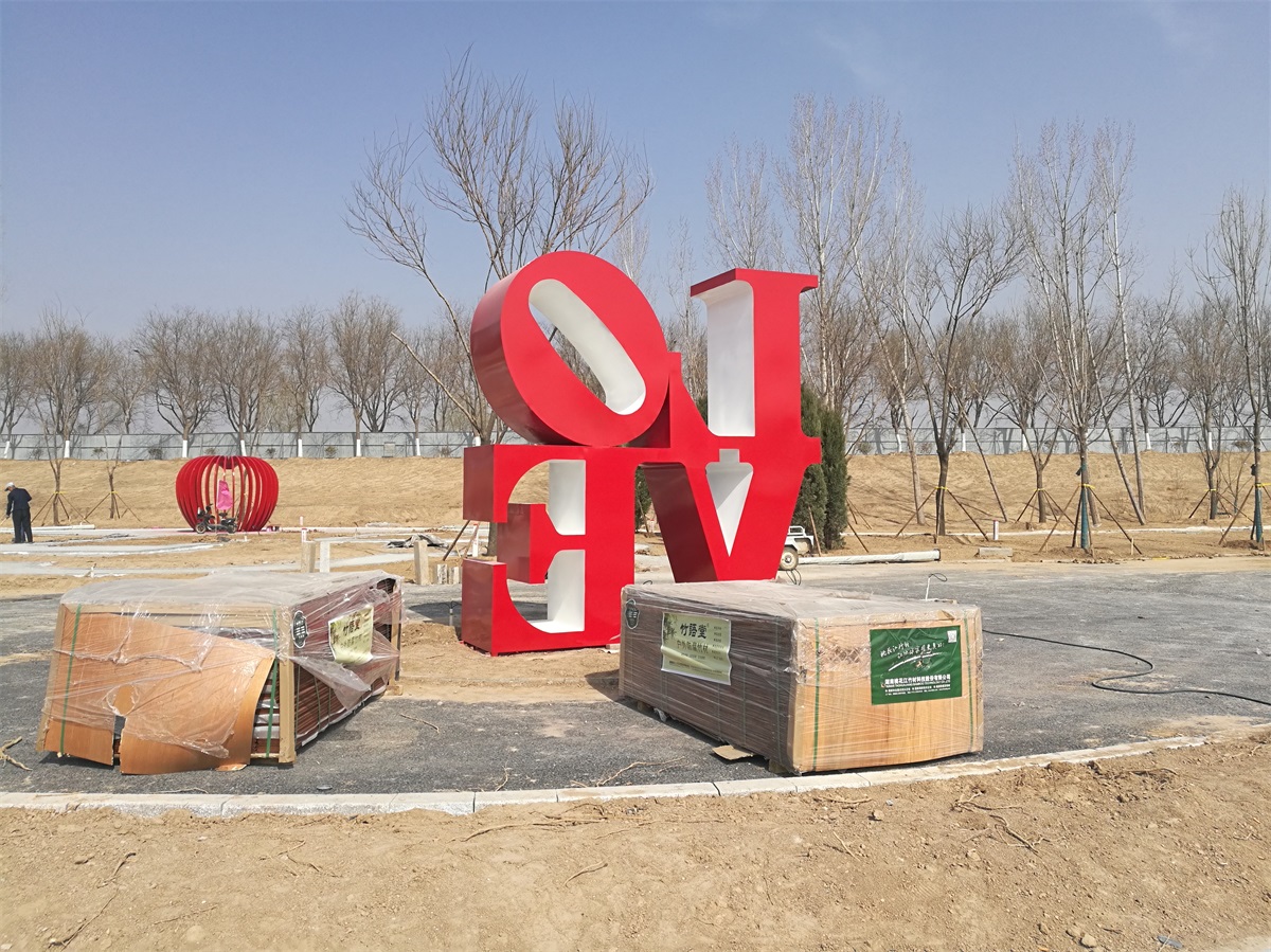 說明:love雕塑高3米,鳥籠雕塑高3.3,金屬材質(zhì)。