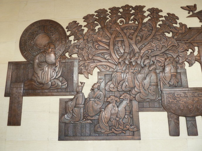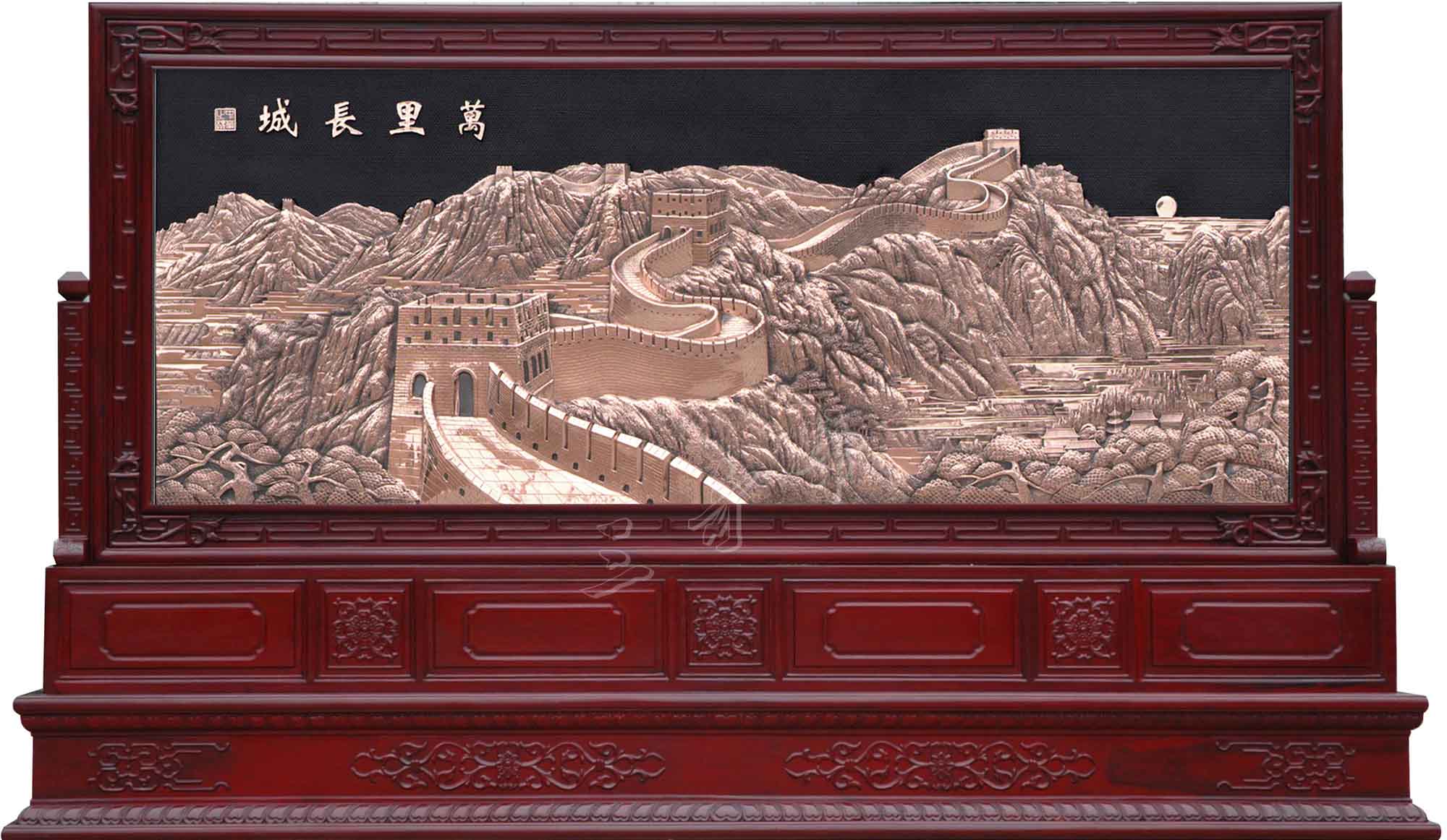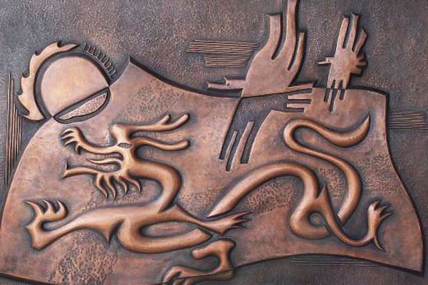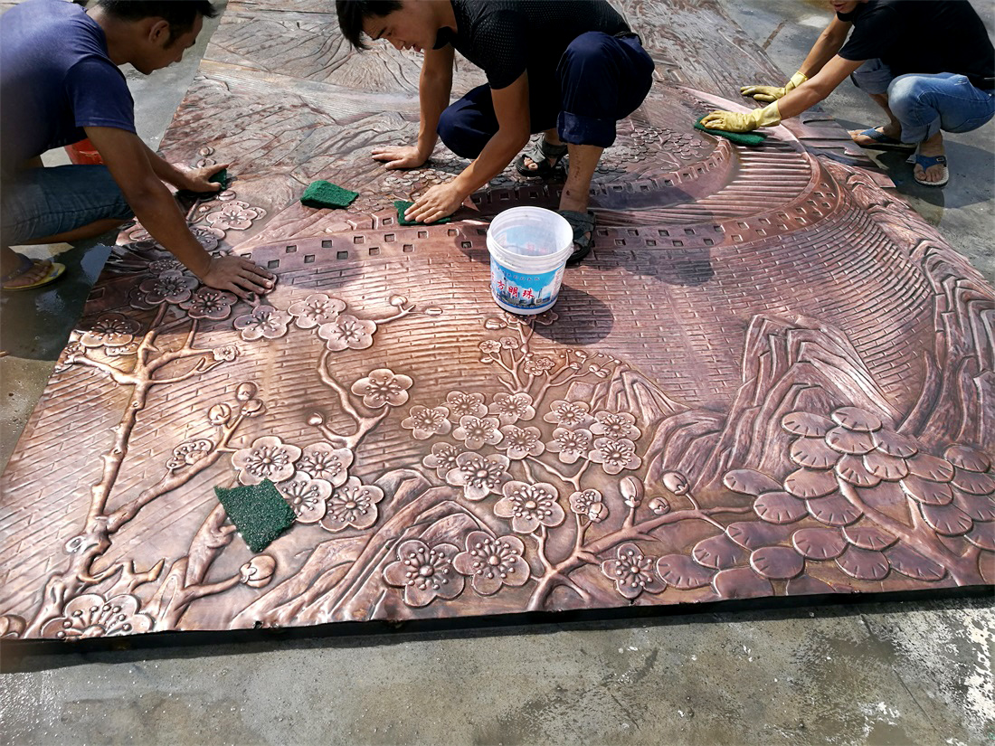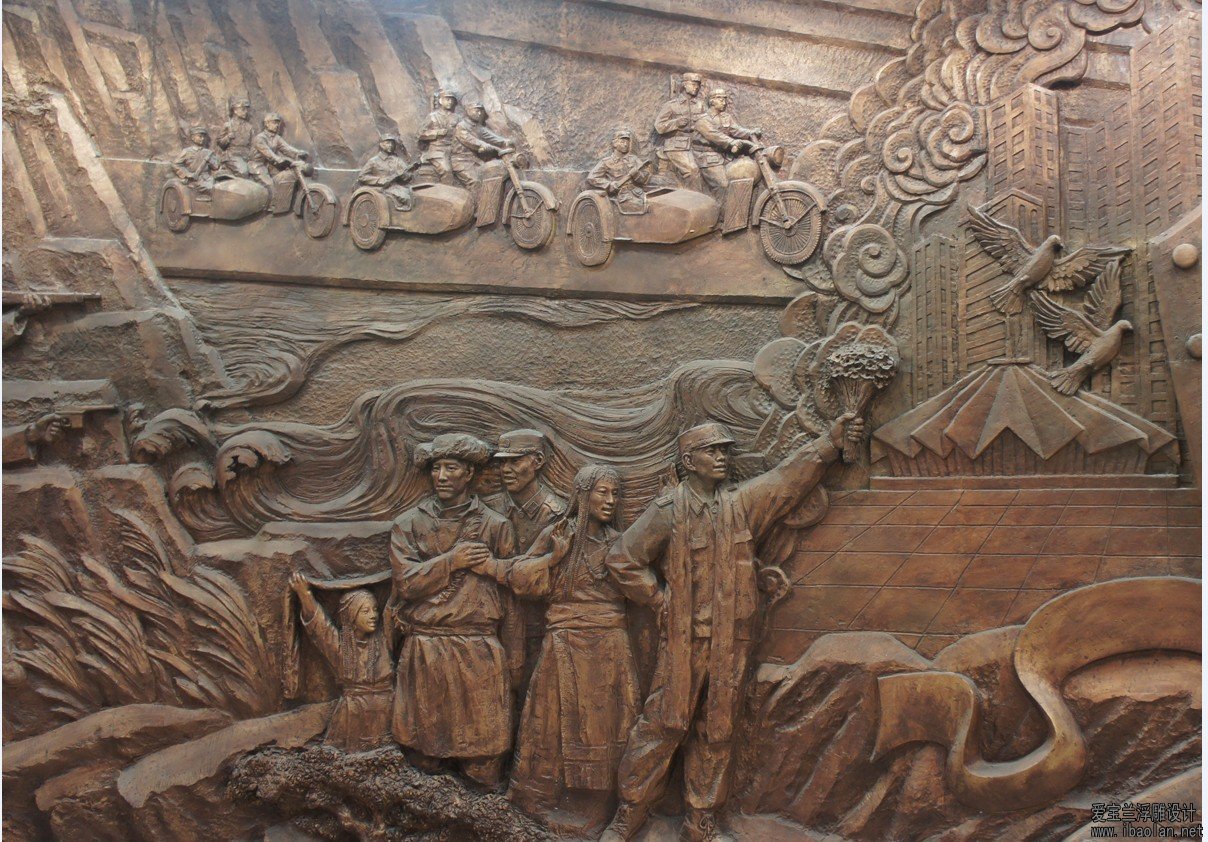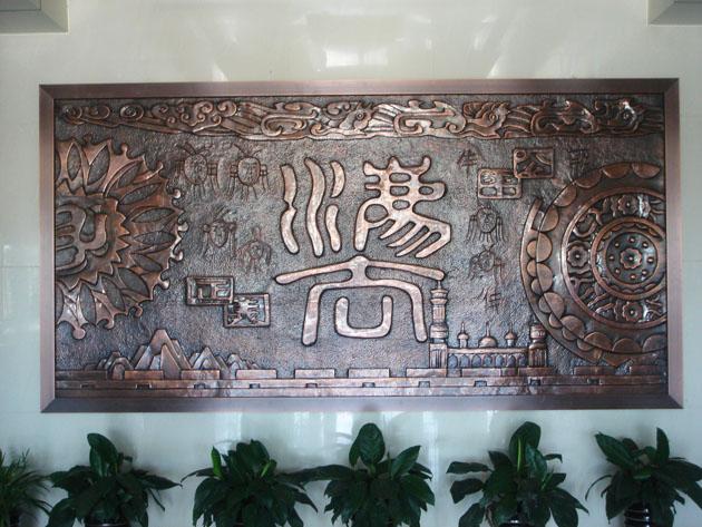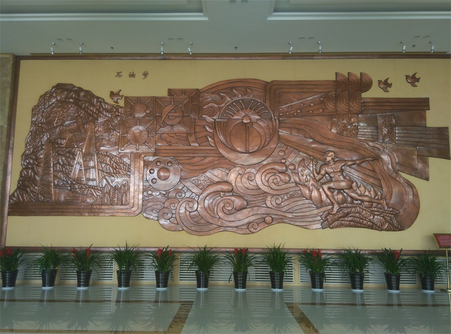 鍛銅雕塑,鍛銅浮雕展示。鍛銅浮雕(又叫鏨銅或敲銅),是利用銅材料的延展性興起來得鏨刻工藝,是我國(guó)傳統(tǒng)手工藝百花中的一枝奇葩。鍛銅雕塑的制作過程是先做出一個(gè)模子,然后用特制的膠粘在固定位置上,將銅板加熱后質(zhì)地變軟的銅板放在模子上用錘子進(jìn)行敲打,敲打后又恢復(fù)堅(jiān)硬,這樣便可以成形,然后進(jìn)行著色處理,最終制作出藝術(shù)作品。