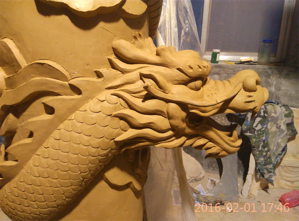 玻璃鋼龍柱雕塑泥塑完成(組圖)